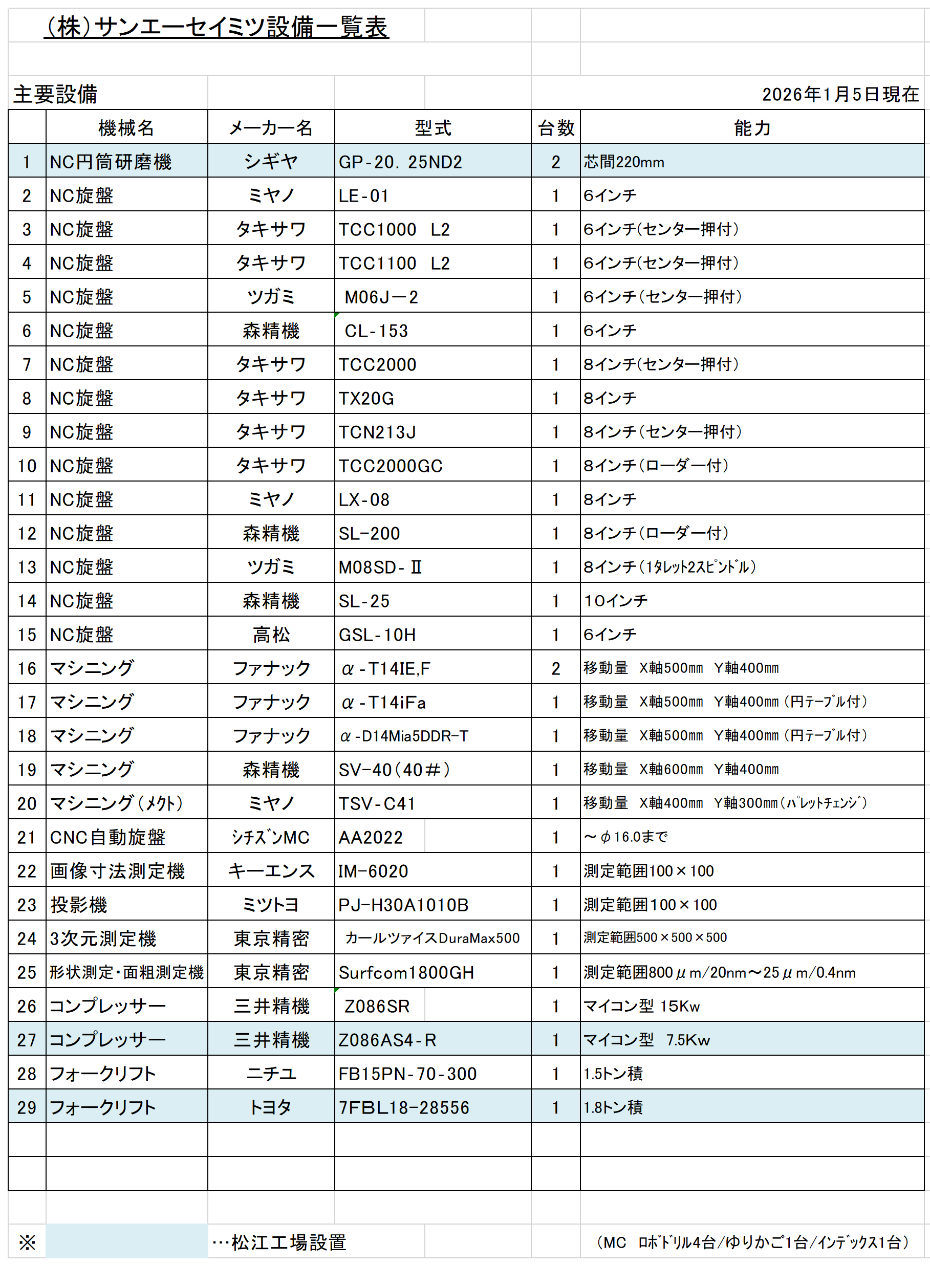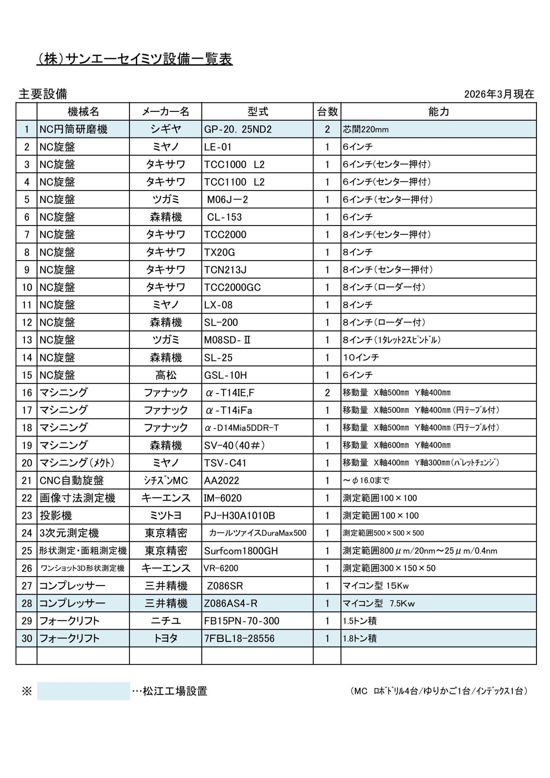 自社設備一覧