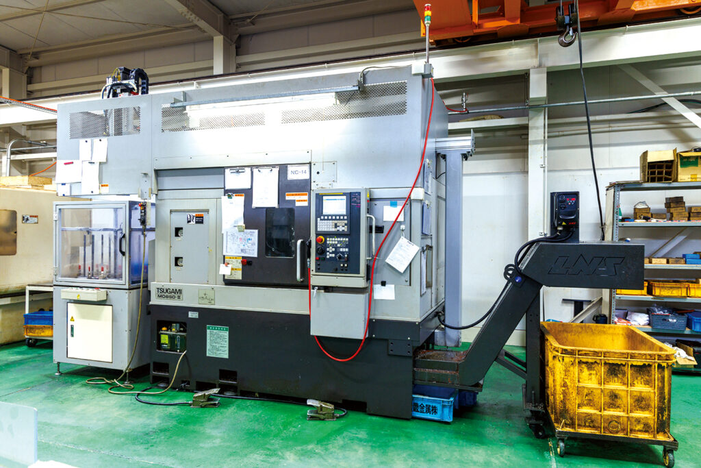 滝沢製NC旋盤TCC-2000Gとツガミ製NC旋盤M08SD-Ⅱは、ローダー仕様にしており、量産費品(1ロット500〜3000程度)の受注にも対応します。